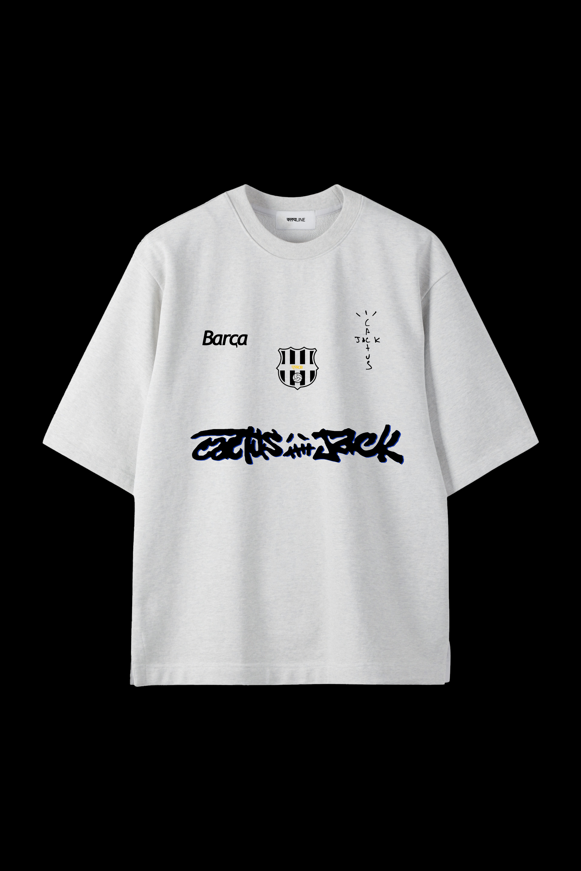 A clash of football heritage and modern street culture. This tee reimagines Barça through a raw, graffiti-inspired lens—minimal up top, loud in attitude below. The bold hand-style graphic across the chest brings underground energy, while subtle Barça detailing keeps it rooted in football culture.