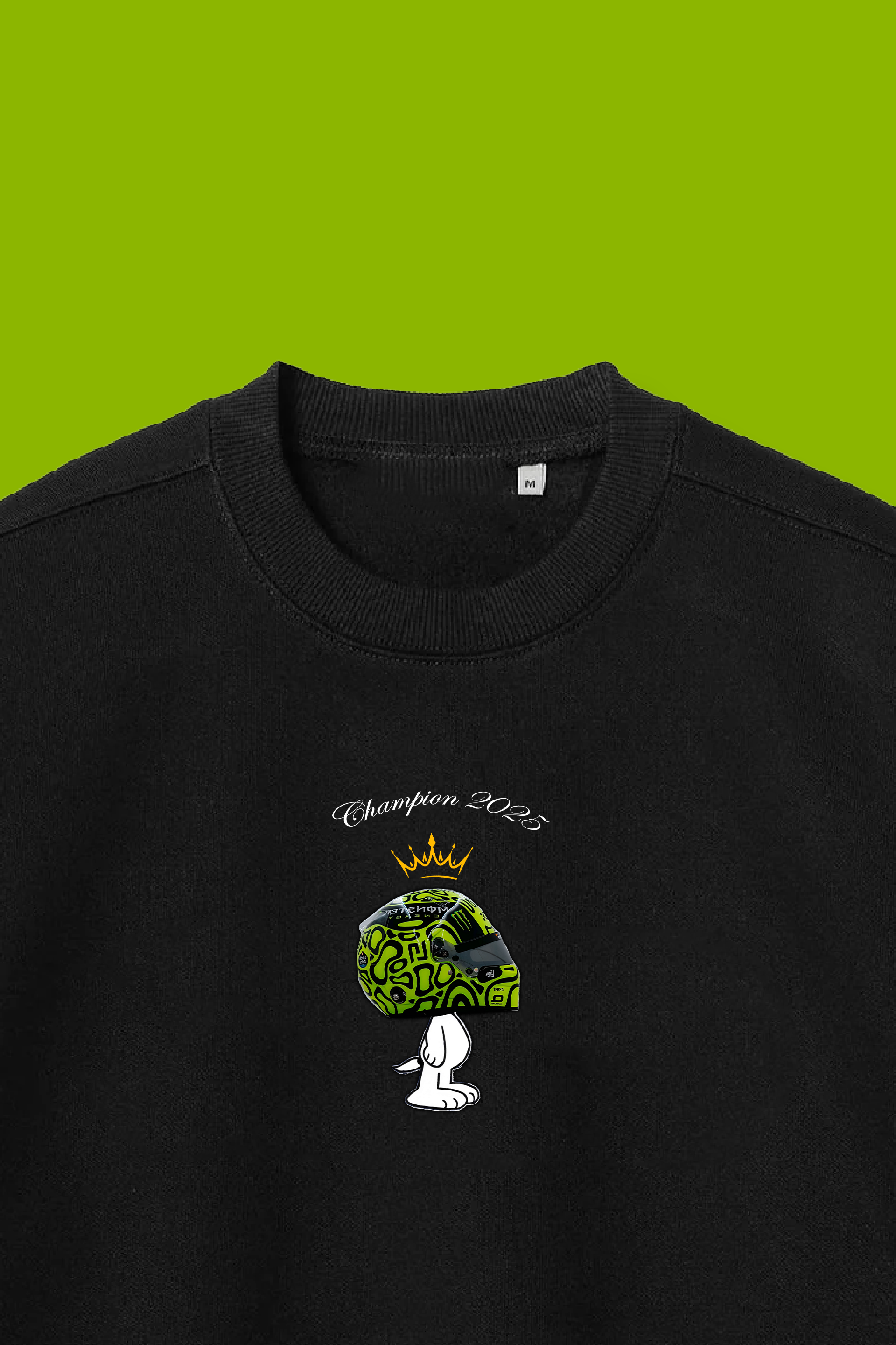 Celebrate a championship moment in style. This premium black crewneck features a clean, centered graphic of a crowned helmet with bold green detailing, capturing the spirit of victory. Soft, warm, and minimalistic — it’s the perfect blend of comfort and fan pride for any Norris supporter.Premium 300 GSM heavyweight fleece — warm, soft and winter-ready.